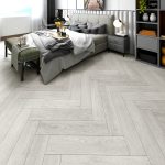 Het klassieke visgraatpatroon (750 x 150 mm) geeft de vloer een luxe en tijdloos karakter, terwijl de lichte tint de ruimte optisch groter en helderder laat ogen. Dankzij het Rigid Click-legsysteem is de vloer eenvoudig en snel te plaatsen zonder lijm.